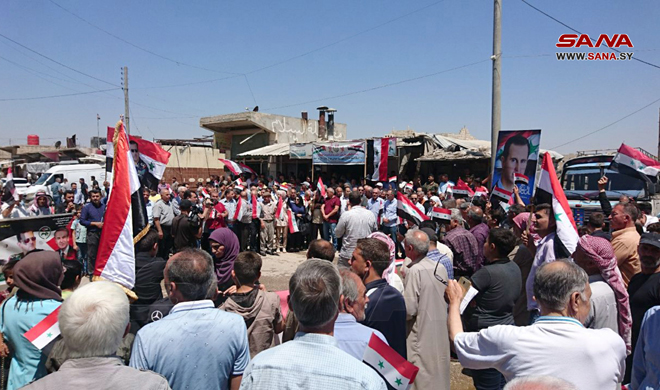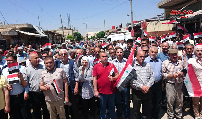 Alep –SANA/Les habitants de la localité de Tall Rifaat et de ses environs dans la banlieue nord d’Alep ont observé aujourd’hui un sit-in de protestation, pour rejeter l’occupation turque et ses mercenaires terroristes et leurs pratiques criminelles commises contre les citoyens syriens.