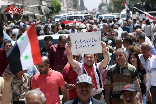 Sit-in de protestation observé par les habitants de Tal Rifaat et les villages avoisinants de la banlieue nord d’Alep, en dénonciation de l’agression turque, le 11-6-2022