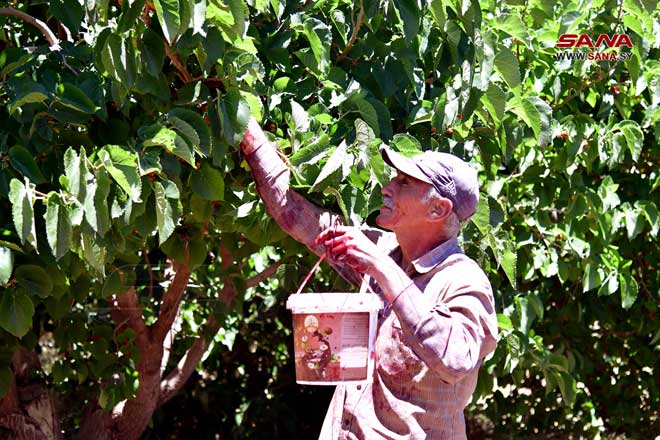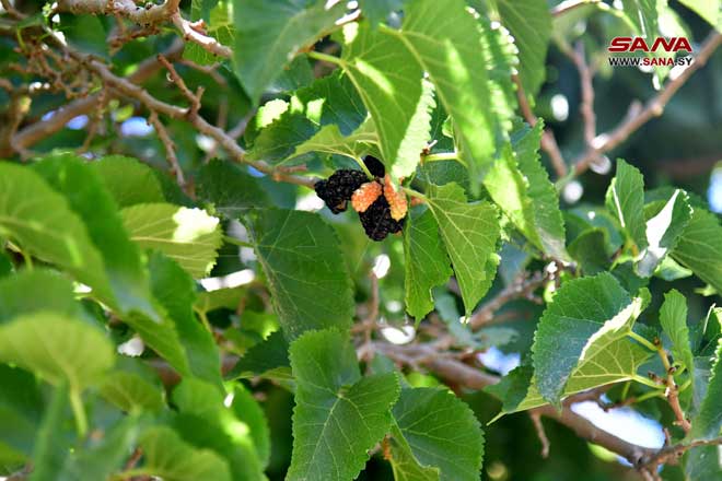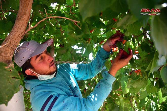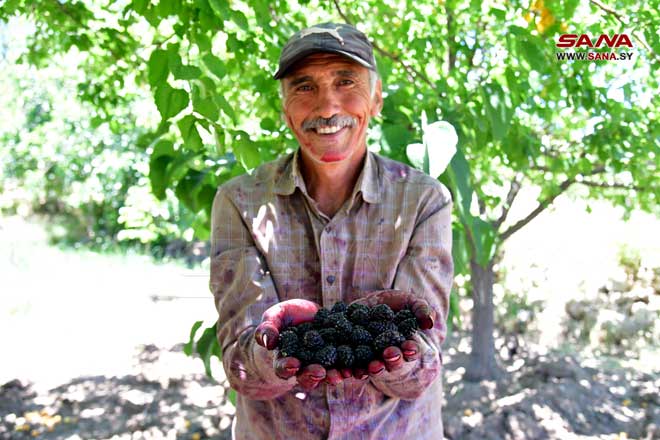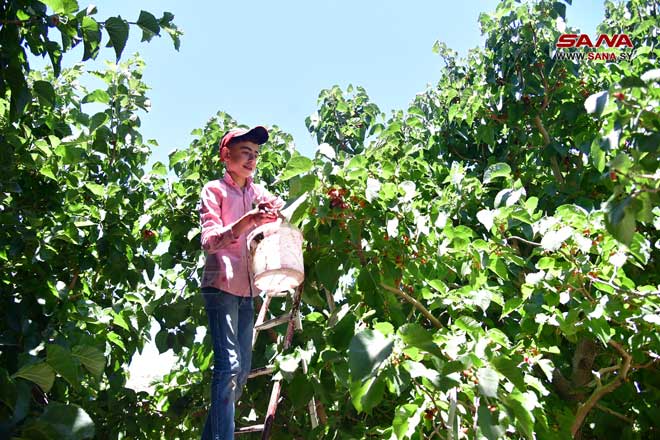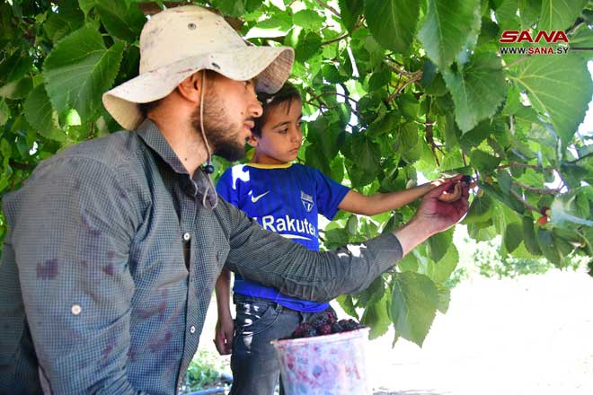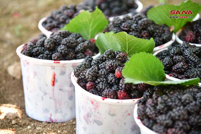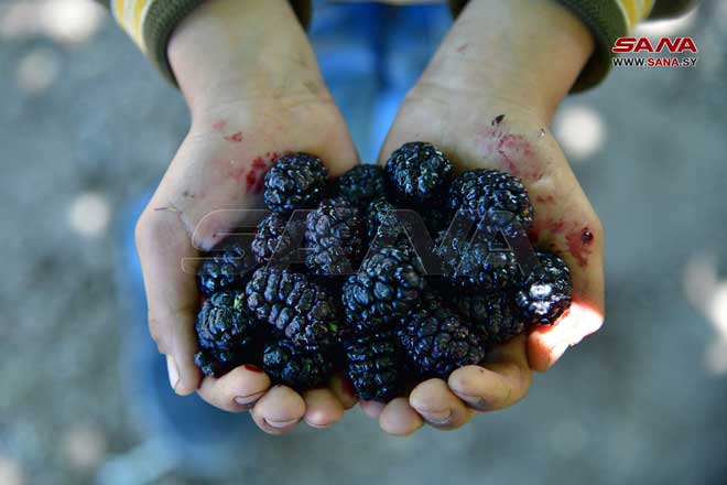 Récolte de mûrier noir à Derbol dans la banlieue de Damas