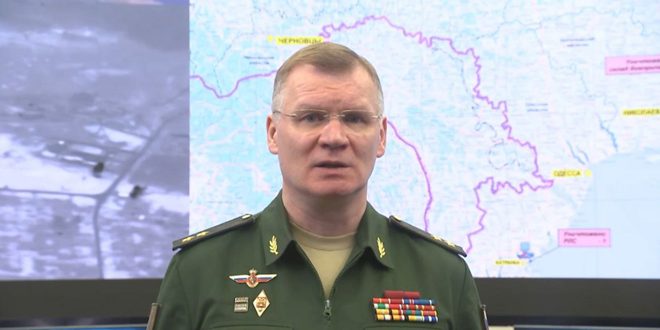 Konachenkov a déclaré que les forces armées russes continuent de bombarder les installations militaires sur les territoires ukrainiens, alors que les forces aérospatiales russes, avec des armes de haute précision, ont détruit deux postes de commandement et cinq dépôts de munitions près d’Ivano-Daryevka, Seversk en la République populaire de Donetsk, Belogorovka en la République populaire de Lougansk, Nikolayev, Lepetikha dans la région de Nikolaïev.