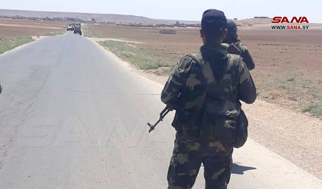 Un point de contrôle de l’armée expulse un convoi des forces d’occupation américaine dans la banlieue de Hassaké, le 1-7-2022
