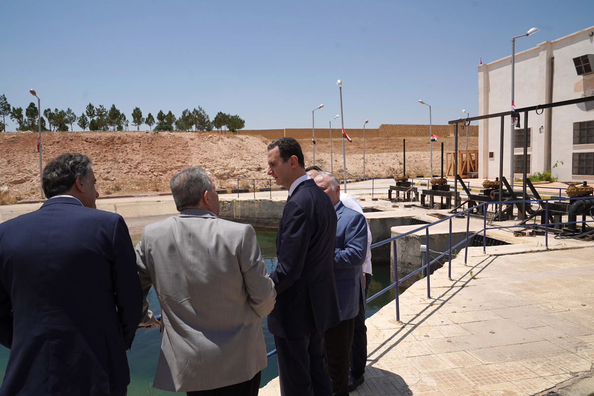 Le président al-Assad a souligné l’importance de réhabiliter l’ensemble des moteurs de la station car il s’agit d’une partie importante du système d’irrigation dans les plaines agricoles d’Alep .
