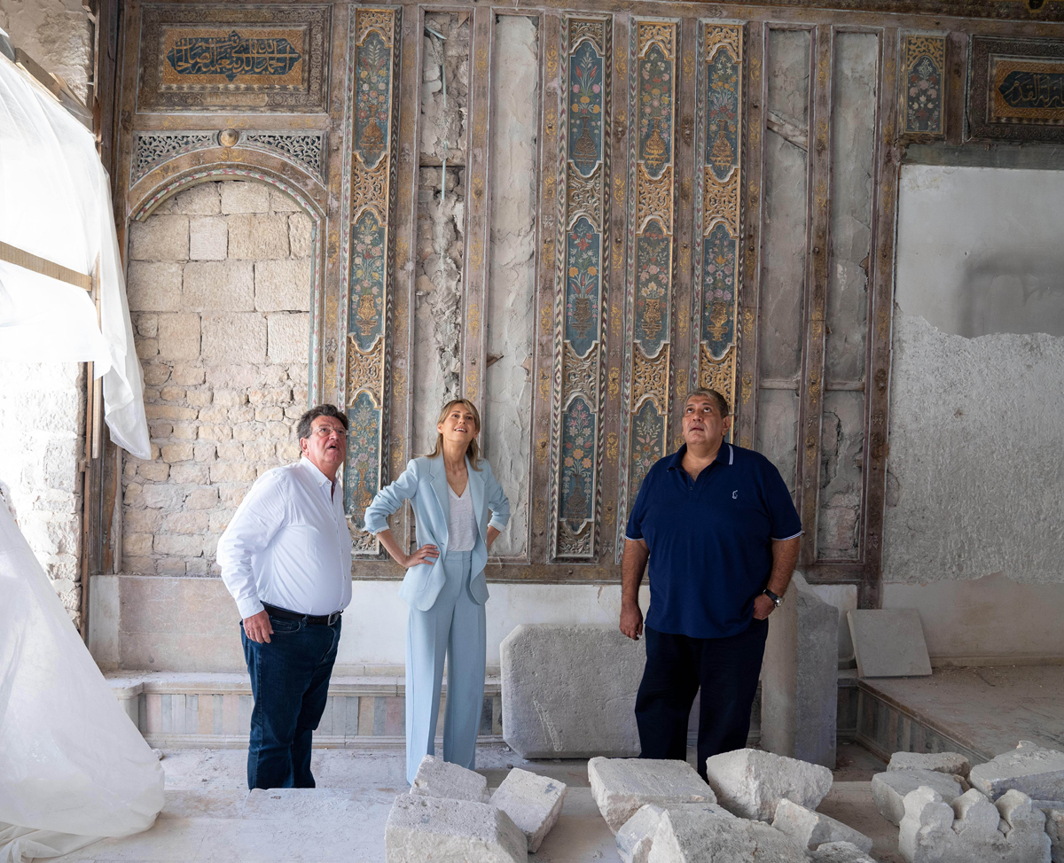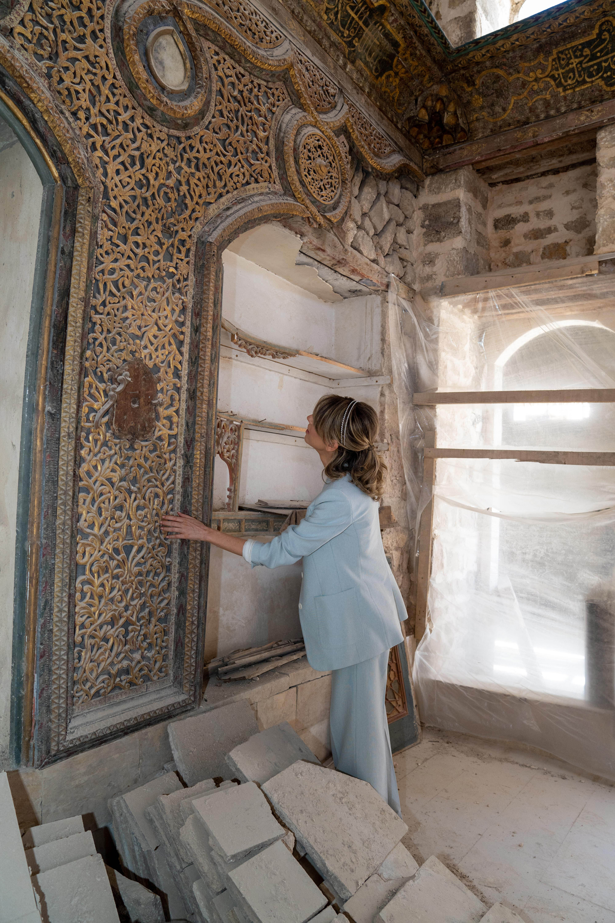 Au terme de sa visite, Mme Asma s’est informée des travaux menés pour réhabiliter et restaurer la 2e partie de l’école de Sayf al-Dawla.