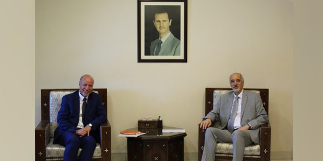 Damas-SANA/Le vice-ministre des Affaires étrangères et des Expatriés, Bachar Jaafari, s’est entretenu avec le directeur régional de l’UNFPA, Louay Chabana des domaines de coopération entre la Syrie et le Fonds des Nations Unies pour la population et les programmes communs et ce, en présence du Omar Ballan, Représentant adjoint du Fonds des Nations Unies pour la population.