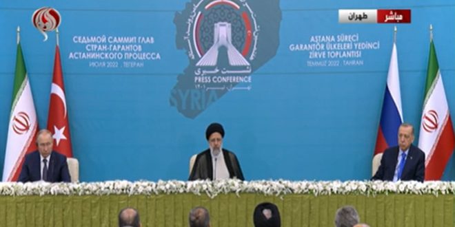 La Déclaration finale de la Réunion tenue aujourd’hui à Téhéran entre les présidents, iranien Ebrahim Raïssi, russe Vladimir Poutine, et le président du régime turc Recep Tayyip Erdoğan, a indiqué que les dirigeants des pays garants ont discuté de la situation en Syrie, passé en revue les développements qui ont suivi le dernier Sommet virtuel le 1er juillet 2020, affirmé leur intention de renforcer la coordination tripartite et abordé le rôle pionnier du processus d’Astana dans le règlement politique et durable de la crise en Syrie.