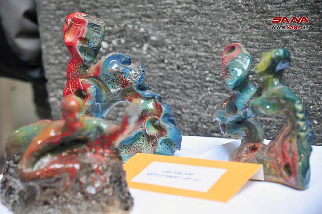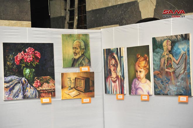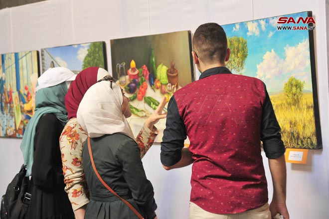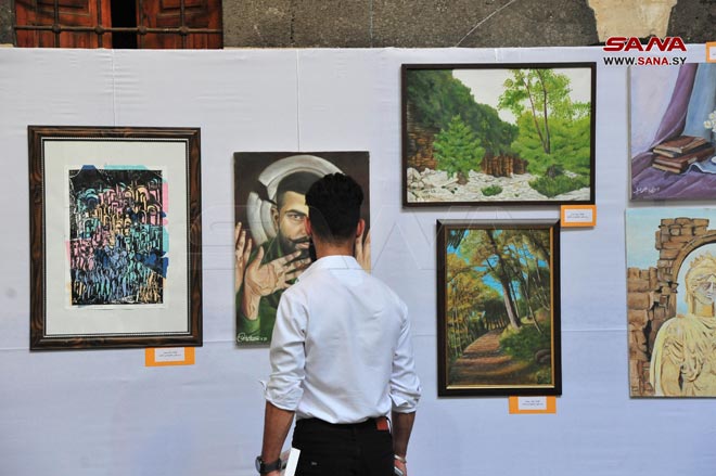 Damas-SANA/ Plus de 146 œuvres artistiques participent à la première exposition centrale des centres d’arts appliqués et plastiques, ce qui constitue une occasion importante pour les artistes créateurs d’être en contact direct avec le public, qui a célébré leur créativité à Khan Asaad Pacha à Damas.