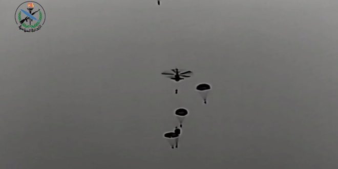 Une de nos formations armées effectue un parachutage nocturne en coopération avec des instructeurs russes