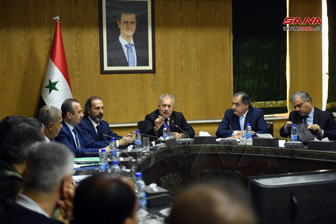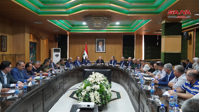 Alep-SANA/Sur directives du président Bachar al-Assad après sa dernière visite à Alep, la délégation gouvernementale présidée par Hussein Arnous, Président du Conseil des ministres, a tenu aujourd’hui une réunion au bâtiment du gouvernorat d’Alep, avec les directeurs des institutions concernées pour suivre la mise en œuvre d’un certain nombre de projets de services et de développement approuvés par le Conseil des ministres.