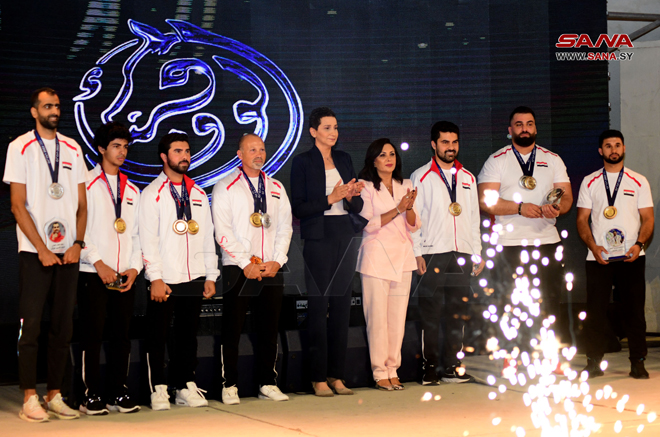 Hommage aux champions syriens participant au tournoi des Jeux Méditerranéens en Algérie, le 13-8-2022
