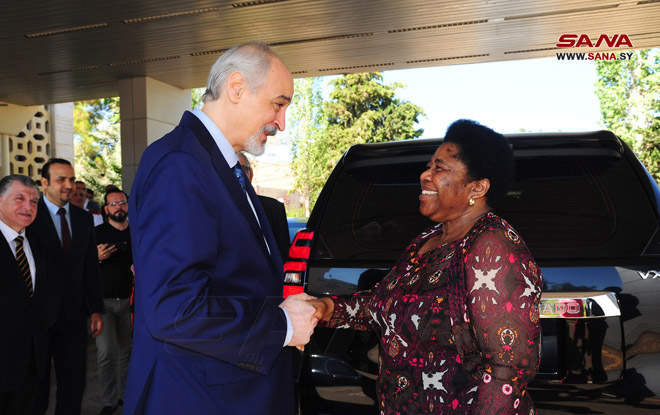 Banlieue de Damas-SANA/La vice-ministre des relations internationales et de la coopération en Afrique du Sud, Candith Mashego-Dlamini, et la délégation qui l’accompagne, sont arrivées ce matin en Syrie, dans une visite formelle, au cours de laquelle elle rencontrera un certain nombre de responsables pour discuter des relations bilatérales.
