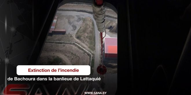 A l’aide d’hélicoptères syriens et russes, extinction d’un incendie dans la banlieue de Lattaquié.