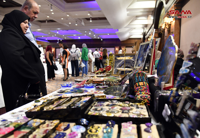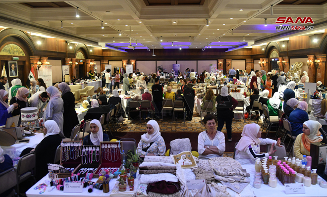 Damas-SANA/Avec la participation de 125 femmes productives de différents gouvernorats, les activités du Bazar syrien /Eclats syriens/ pour les femmes productives, organisé par le Comité des femmes d’affaires de la Chambre de commerce de la banlieue de Damas, a été ouvert hier soir à l’hôtel Sheraton à Damas.