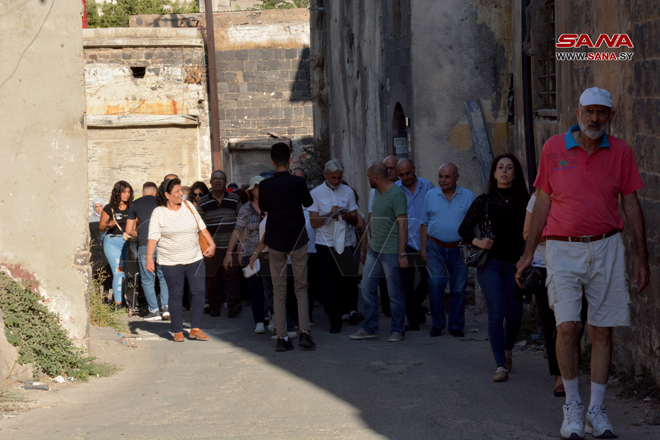 200 participants à la marche ont parcouru les zones de Bab Tadmor, al-Borj, al-Sour, le monastère du Saint-Elian, la mosquée al-Sarraj, Dar Moufid Amine, l’Eglise al-Arba’ine et les écoles de Ghassaniyah et ont écouté des spécialistes dans l’affaire archéologique et touristique un aperçu exhaustif sur des monuments importants de la vieille ville de Homs.