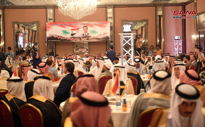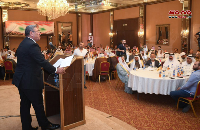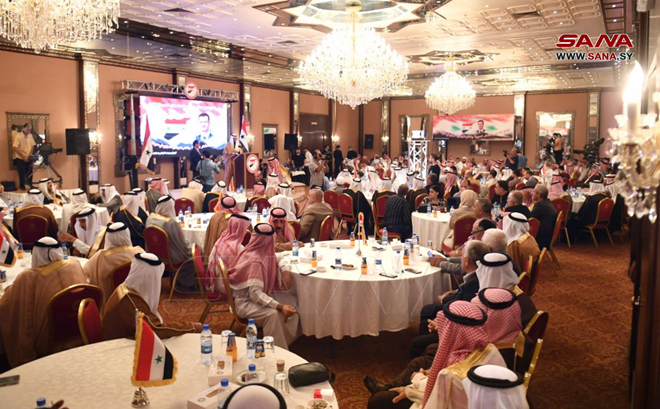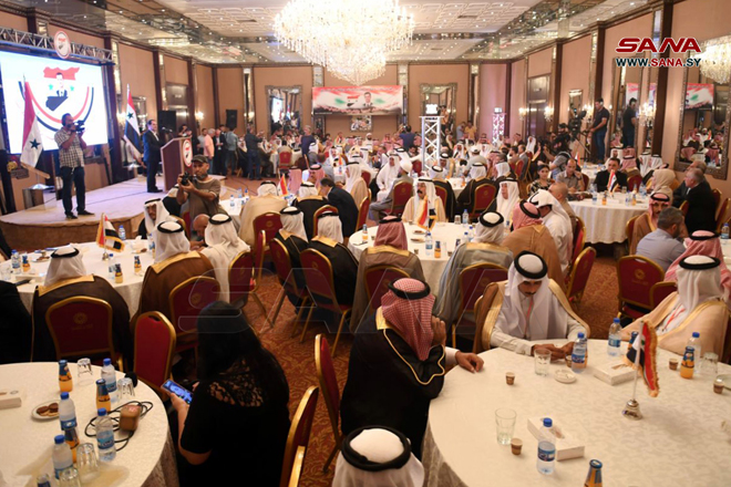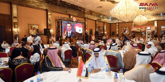 Alep-SANA/ Les participants à la 4e rencontre des tribus et des clans arabes et des élites nationales, tenue aujourd’hui à Alep, ont réitéré leur attachement aux constantes et aux principes confirmant l’unité et la souveraineté des territoires syriens, le rejet de toute forme d’occupation étrangère et le soutien à l’armée arabe syrienne et sa direction.