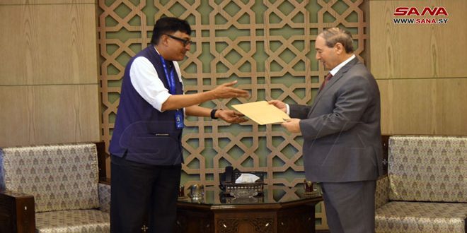 Damas -SANA/Le ministre des Affaires étrangères et des Expatriés, Fayçal Miqdad, a reçu les lettres de créance de Sudipto Mukerjee en tant que représentant résident du Programme des Nations unies pour le développement “PNUD” en Syrie.