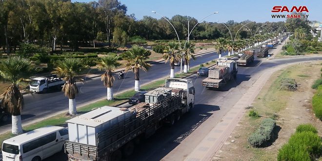 Lattaquié -SANA/ Un convoi, composé de 12 camions chargés de matériel et d’équipements électriques nécessaires pour maintenir le réseau électrique et améliorer l’état de l’électricité, est arrivé aujourd’hui à Lattaquié.