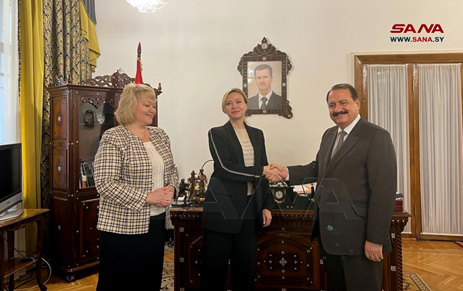 Moscou-SANA/ La ministre des Affaires Etrangères de la république populaire de Donetsk, Natalia Nikanorova, a examiné aujourd’hui avec l’ambassadeur de Syrie auprès de la Russie, Ryad Haddad, les perspectives de la coopération entre les deux pays, et ce, lors d’une réunion tenue au siège du ministère syrien à Moscou.