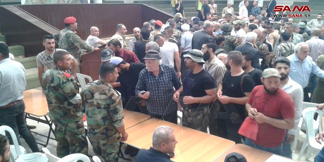 Soueidaa-SANA/ Le processus de régularisation de la situation des personnes recherchées, des déserteurs et des personnes qui ont échappé aux deux services obligatoires et de réserve a commencé aujourd’hui à la salle de 7 avril dans la ville de Soueidaa, en présence de personnalités civiles, sociales et officielles.