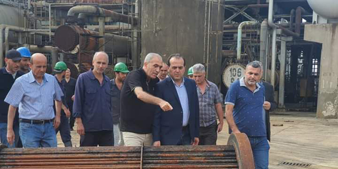 Damas-SANA/ Le ministre du Pétrole et des Ressources minérales, l’ingénieur Bassam Tohmé, a inspecté la réalité des travaux et de l’exploitation dans la raffinerie de Homs et a passé en revue les mesures d’exploitation en toute sécurité conformément au plan d’urgence opérationnel.