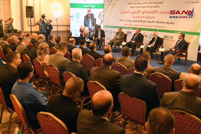 Damas-SANA / Avec la participation de plus de 90 entreprises et hommes d’affaires jordaniens, les travaux du Forum économique jordano-syrien, organisé par la Chambre du commerce de la Jordanie en coopération avec l’Union des Chambres du commerce de la Syrie, sous l’égide du ministère de l’Economie et du Commerce extérieur ont commencé aujourd’hui à l’hôtel Dama Rose à Damas.