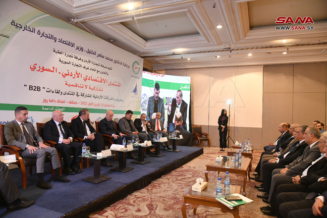 Dans une déclaration à SANA, le Directeur général de la zone franche syro-jordanienne, Arfan al-Khassawneh, a fait savoir que le Forum est une opportunité pour les hommes d’affaires et les investisseurs syriens et jordaniens de se rencontrer et informer les participants des domaines d’investissement disponibles.
