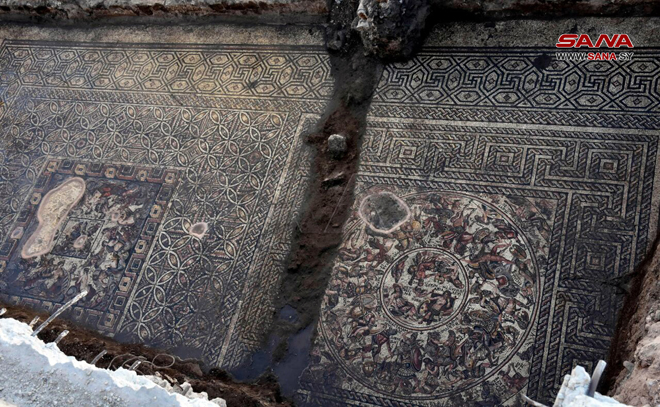 Homs-SANA/ La Direction générale des Antiquités et des Musées a annoncé qu’un panneau en mosaïque unique au monde, datant de l’époque romaine, a été découvert dans la ville d’al-Rastane dans le gouvernorat de Homs.