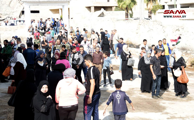 Idleb-SANA/ Plus de 800 familles sont retournées aujourd’hui à la ville de Maarat al-Nouman dans la banlieue d’Idleb, après l’avoir purifiée du terrorisme et fourni les services de base.