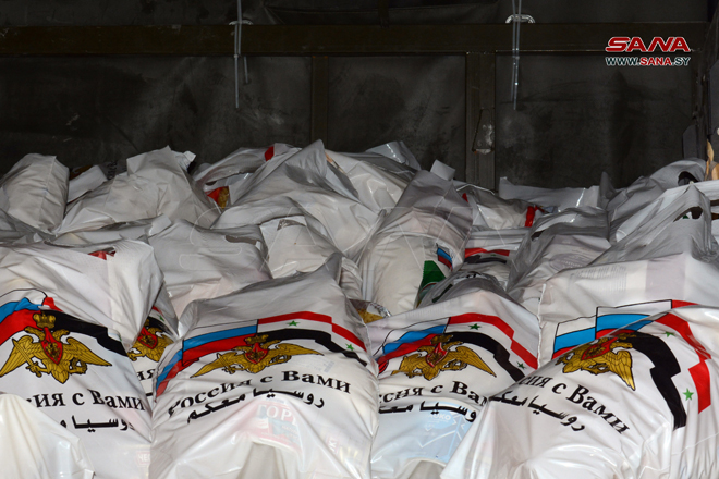 Pour sa part, le chef de la délégation russe du Centre de réconciliation russe, Pavel Konovalov, a indiqué que les aides sont octroyées au nom du peuple russe au peuple syrien dans le but d’adresser un message au monde que la Russie continue de fournir toutes les formes de soutien matériel et moral au peuple syrien malgré la guerre qu’elle mène.