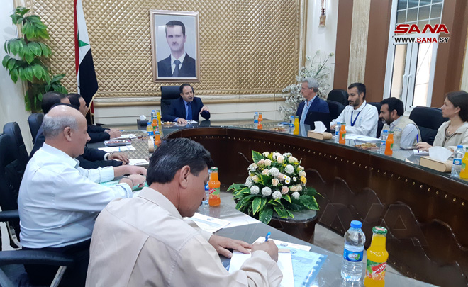 Hassaké-SANA/ Le gouverneur de Hassaké Louay Sayyouh a examiné aujourd’hui, lors de sa rencontre avec Kenneth Ray Crossley, directeur régional du Programme alimentaire mondial « PAM », et la délégation qui l’accompagne, le renforcement de la coopération bilatérale dans les domaines des boulangeries, de l’agriculture, de l’électricité et des aides alimentaires.