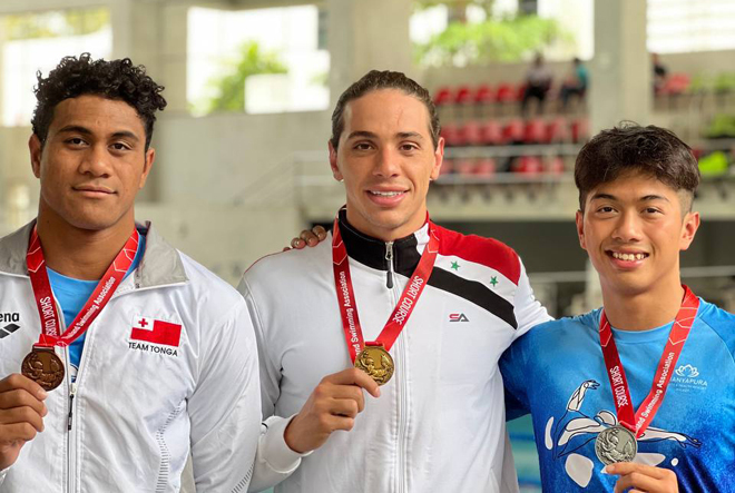 Le nageur syrien Omar Abbas remporte deux médailles (or et argent) au Championnat international de Thaïlande, le 22-10-2022