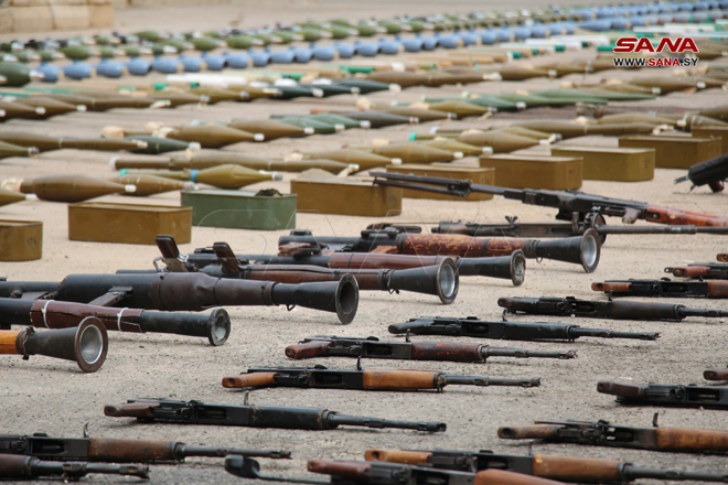 Les services compétents saisissent d’armes et de munitions dans les QG du réseau terroriste de “Daech” dans la banlieue de Daraa, le 25-10-2022