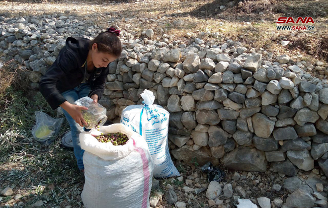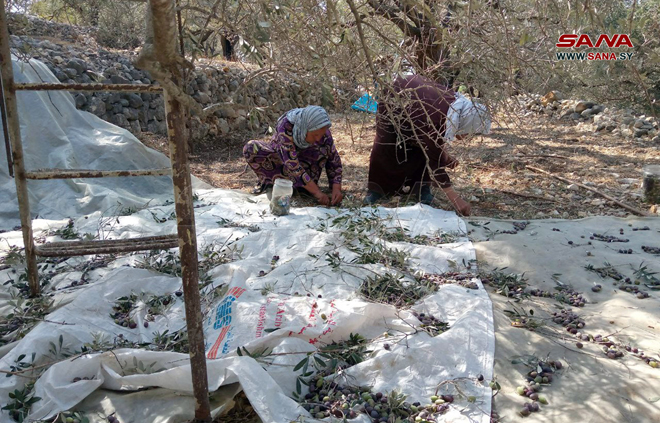 Cueillette des olives dans le village de Darti à Cheikh Badr