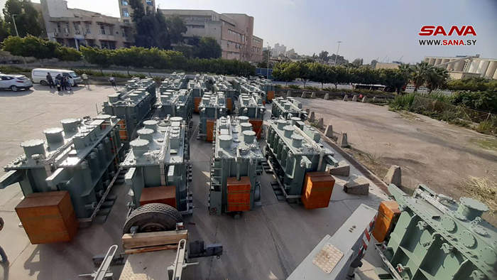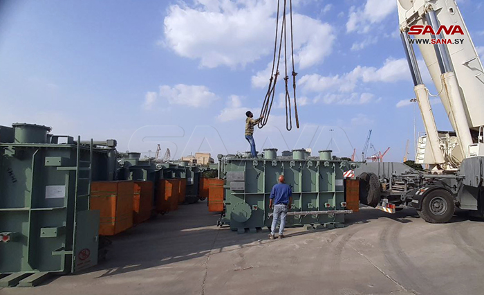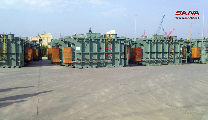 Tartous-SANA/ La 1ére quantité des transformateurs électriques 66/20 KV, de capacité 30 MVA, dont le nombre est 20, est arrivée aujourd’hui au port de Tartous.