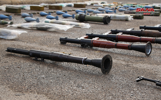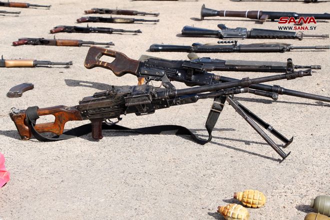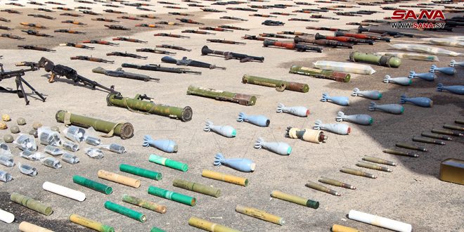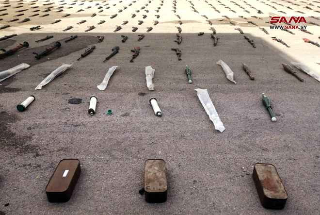 Daraa –SANA/Les services compétents, en coopération avec les habitants, ont saisi des quantités d’armes, lors du ratissage du quartier de Tariq al-Sad dans la ville de Daraa.