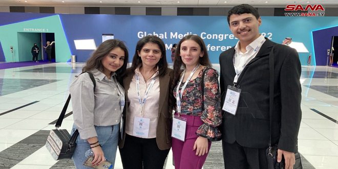 Abou Dhabi-SANA/ Suite à l’initiative de soutien à la jeunesse arabe distinguée dans le domaine des médias, un nombre d’étudiants syriens excellents de la Faculté de l’Information à l’Université de Damas a participé aux activités du Congrès mondial des médias, organisé dans la capitale émiratie Abou Dhabi.