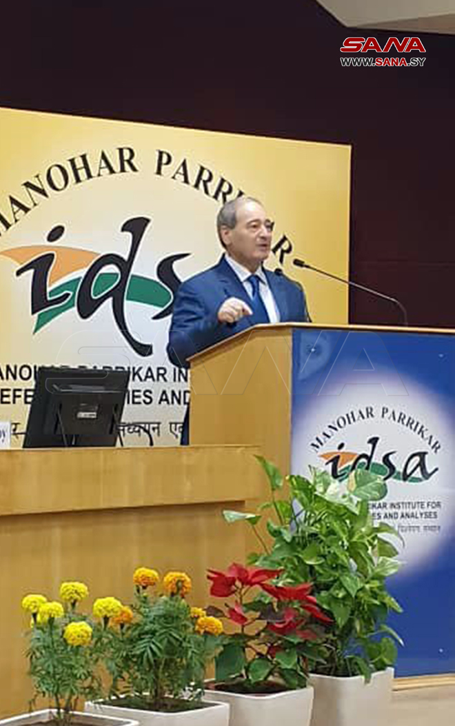 New Delhi-SANA/ Dans le cadre de la visite qu’il effectue dans la capitale indienne New Delhi, Dr Fayçal Miqdad, ministre des Affaires étrangères et des Expatriés, a tenu une séance de dialogue avec les chercheurs de l’institut « Manohar Parrikar » pour les études et l’analyse de la défense « idsa », et ce, en présence des experts militaires, de politiciens, des universitaires et des personnalités diplomatiques.