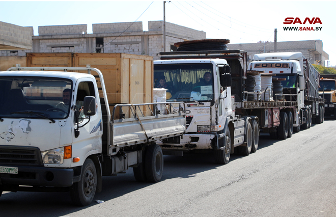 Daraa-SANA/ Un convoi de fournitures et de divers équipements électriques est arrivé dans le gouvernorat de Daraa, fourni par le ministère de l’électricité, visant à soutenir le réseau électrique et à améliorer les services du gouvernorat, qui a commencé à connaître une stabilité effective après une série d’opérations de sécurité contre des groupes terroristes.
