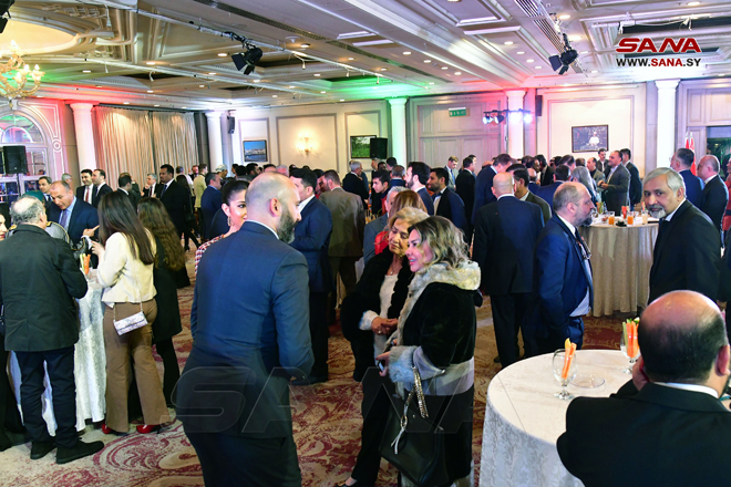 La Conseillère spéciale à la Présidence de la République, Dr. Buthaina Chaabane, le ministre des affaires de la présidence, Mansour Azzam, le ministre de l’enseignement supérieur et de la recherche scientifique, Bassam Ibrahim, la ministre de la culture, le ministre de l’Éducation, et le ministre de l’Industrie, ainsi que des personnalités religieuses, économiques et culturelles, un nombre d’artistes syriens ont pris part à la récpetion.