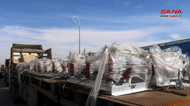 Deir Ezzor-SANA/ L’établissement de l’électricité de Deir Ezzor a reçu aujourd’hui, un convoi du matériel électrique octroyé par le ministère de l’Électricité, qui comprend des transformateurs électriques, des huiles, des câbles.