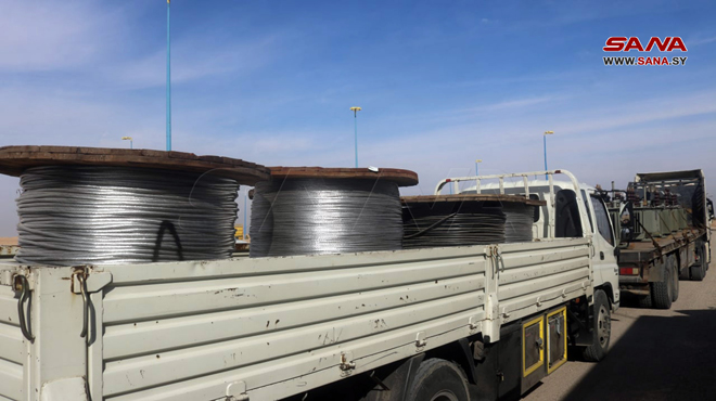 Dans une déclaration qu’il a donnée au correspondant de SANA, le directeur général adjoint de l’établissement de transmission et de distribution de l’électricité, Ahmed Salmani, a indiqué que ce convoi s’inscrit dans le cadre du plan pris par le ministère visant à fournir des matériels et équipements pour les réseaux à basse tension, et à renforcer la fiabilité du système électrique à Deir Ezzor pendant l’hiver et contribue à la réhabilitation et à la maintenance des réseaux qui avaient été gravement endommagés à la suite d’attaques terroristes.