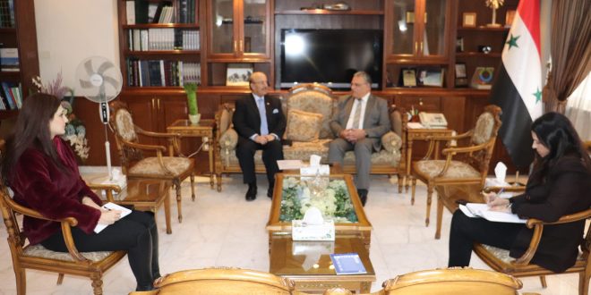 Damas-SANA/ Le ministre de l’Agriculture et de la Réforme agraire, Mohammad Hassan Qatana, a examiné avec l’ambassadeur de Bahreïn auprès de la Syrie, Wahid Moubarak Sayyar, la promotion de la coopération agricole entre les deux pays.