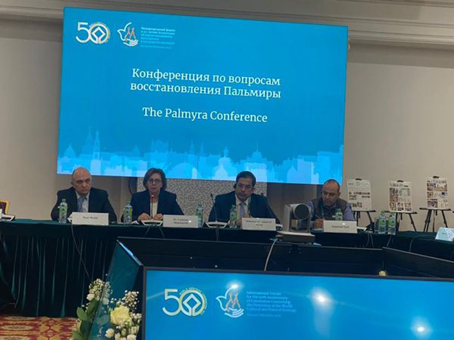 Dans la séance d’ouverture de la conférence sur Palmyre et la restauration de l’Arc de Triomphe, à laquelle ont participé la délégation syrienne et un grand nombre d’experts internationaux, Mouchaweh a souligné le souci de la Syrie de redonner à l’Arc de Triomphe sa brillance.