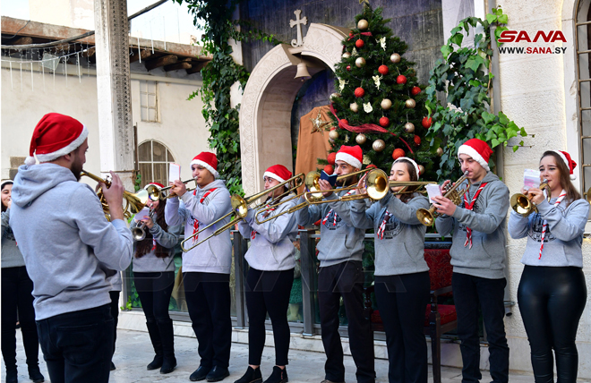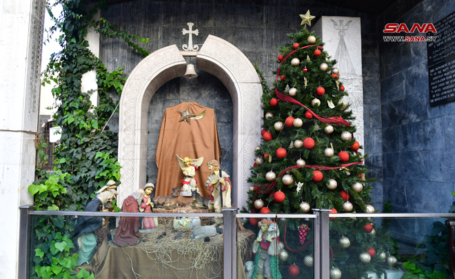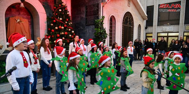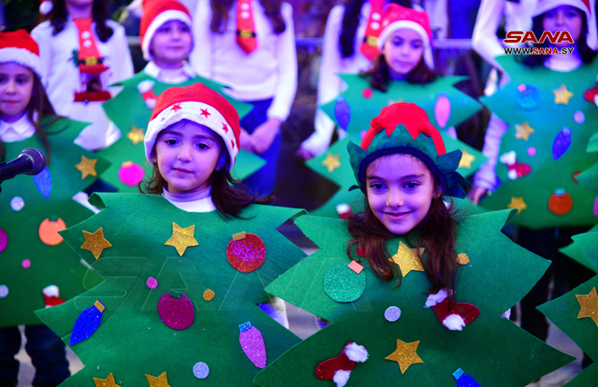 Illumination du sapin de Noël à l’église de Saint Sarkis pour les Arméniens Orthodoxes à Damas
