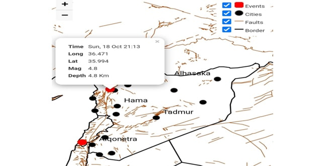 Damas-Sana/Un séisme de magnitude de 4,8 degrés sur l’échelle de Richter a frappé hier soir le nord-ouest de la ville d’Idleb.