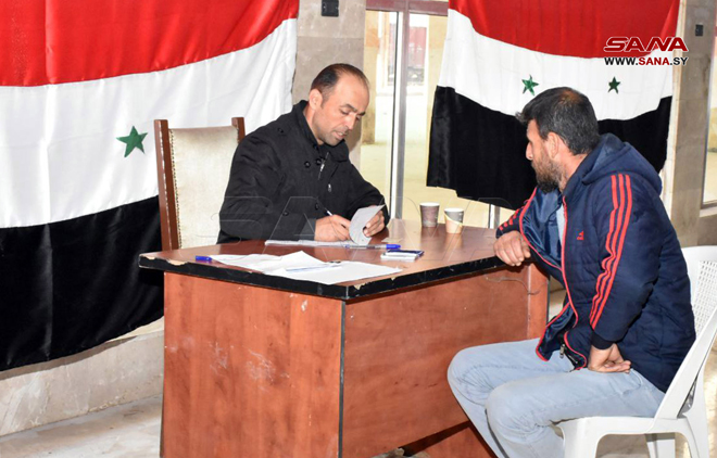 Hama-SANA/ Le centre de la régularisation de la situation dans la ville de Hama a continué à recevoir les citoyens souhaitant régulariser leur situation, y compris les civils recherchés, les déserteurs et les personnes qui ont échappé aux deux services obligatoires et de réserve.