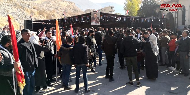 Banlieue de Damas-SANA / Une célébration populaire et officielle a eu lieu aujourd’hui sur la place de la localité d’Ain al-Fijah, dans la banlieue de Damas, en prélude au retour des habitants après leur déplacement de leurs domiciles et terres pendant des années, en raison du terrorisme.