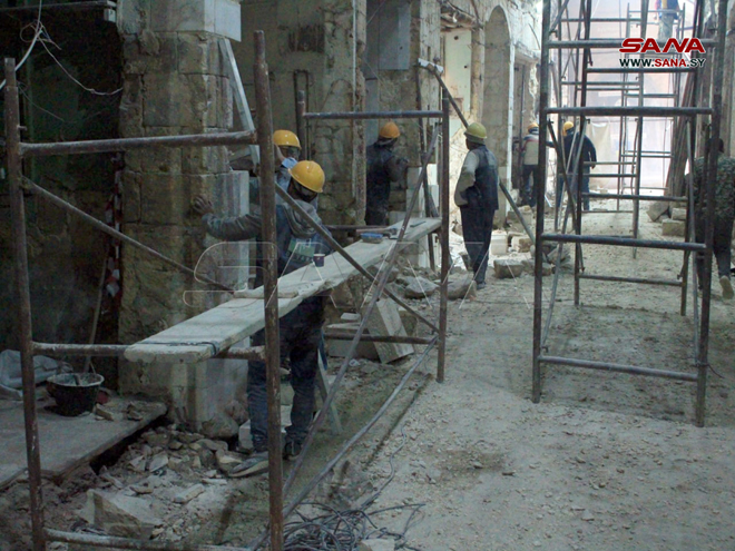 Des efforts inlassables ont été faits par la direction de la vieille ville d’Alep, le Trust syrien pour le Développement, la Direction générale des Antiquités et des Musées et la Fondation Aga Khan en vue d’achever les travaux de la restauration et de la réhabilitation des souks de la vieille ville d’Alep.