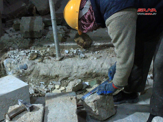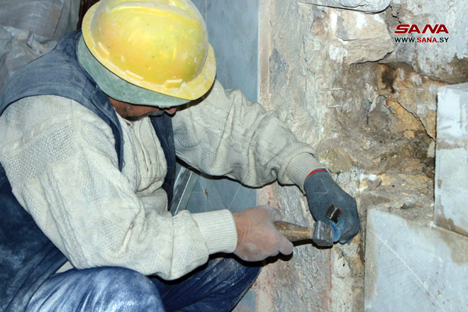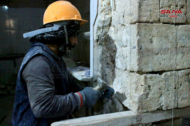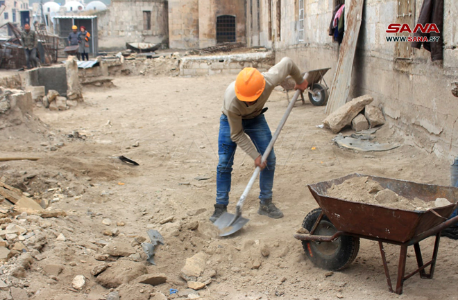 Alep –SANA/ Les travaux de restauration des souks de la vieille ville d’Alep se poursuivent depuis sa libération du terrorisme il y a six ans pour éliminer les traces de la destruction et du sabotage qui en avaient visé de grandes parties, pour restaurer pendant ces années les souks de Khan al-Harir, al-Hibal, al-Ahmadiyah et Sahet al-Fustoq, alors que les travaux de restauration se poursuivent dans le souk al-Saqtiyah.