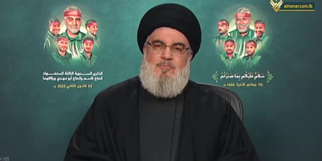 Beyrouth-SANA/ Le secrétaire général du Hezbollah, Sayyed Hassan Nasrallah, a affirmé que la fermeté de la Syrie et de l’Iran avait fait échouer le plan américain dans la région, qui a pour objectif de s’emparer, de dominer et de contrôler les richesses des pays.