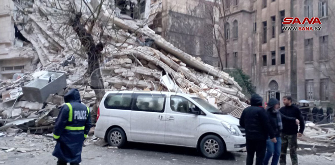 Des blessés et des bâtiments gravement endommagés du fait du tremblement de terre à Alep